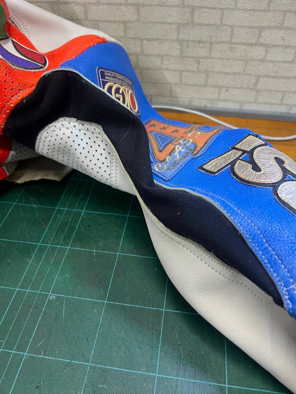30年程前に購入したものですが、革部分はまだまだ綺麗でしたのでジャージ部分を直せばまだまだ着用できるツナギでした。お手入れもしていたんだと思います。お手入れしていれば革は長く愛用できますので日々のお手入れもお願いしますね!革のお手入れどうしたらいいの?👈ここから確認してくださいね!
