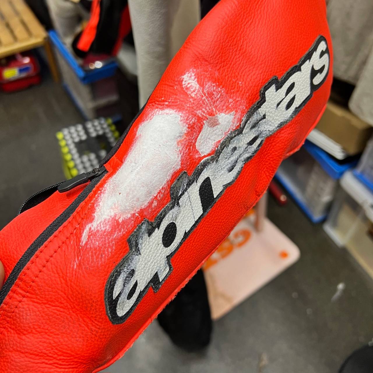 Alpinestars ツナギ 転倒による擦れ 色剥げ リペア